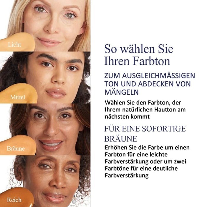 - Wählen Sie für ein natürliches Finish einen Farbton, der zu Ihrem Hautton passt, oder gehen Sie einen Farbton höher für einen bronzenen Glanz! 🌞