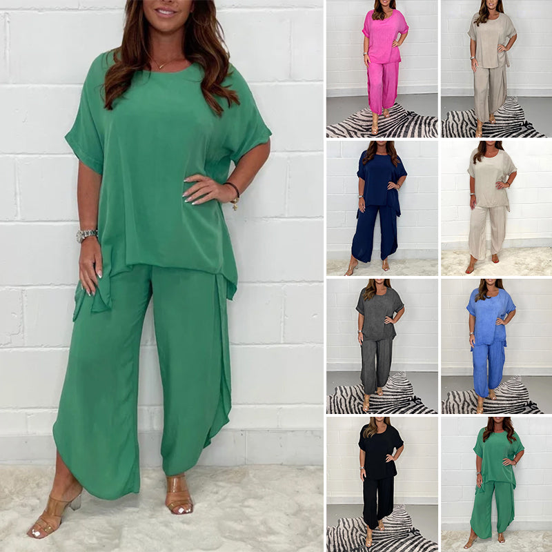 Mit seinen einfachen, bequemen und stilvollen Eigenschaften ist dieser einfarbige Rundhals-Zweiteiler zu einer beliebten Wahl für viele Menschen geworden.